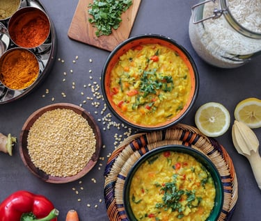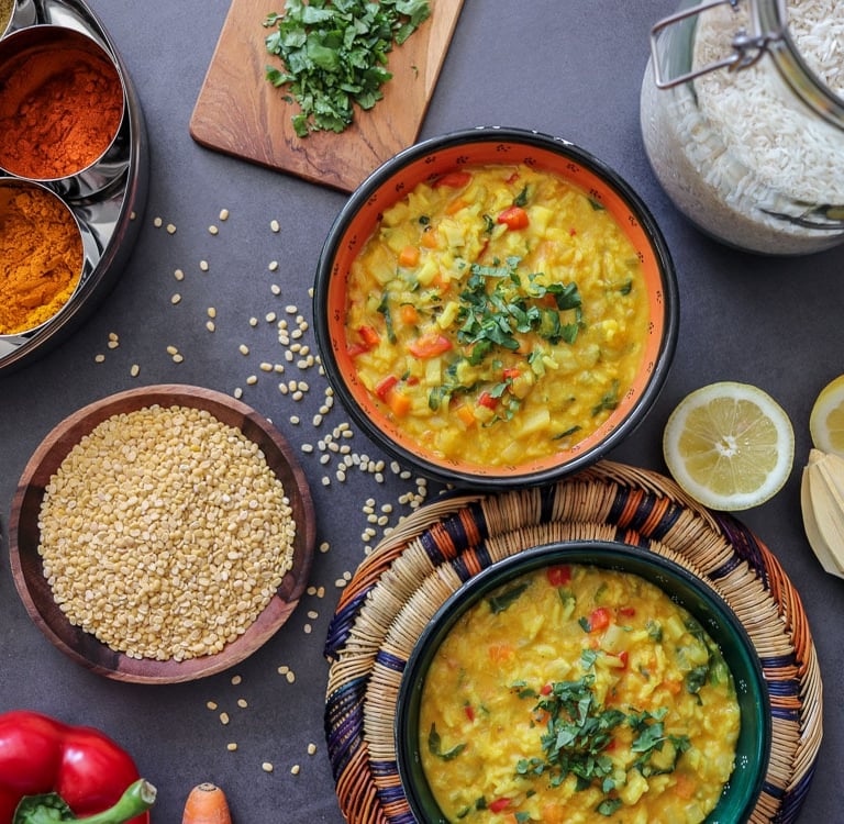 Ajouter de l’eau si le plat s’assèche, le kitchari doit garder une consistance moelleuse avec un peu de liquide.